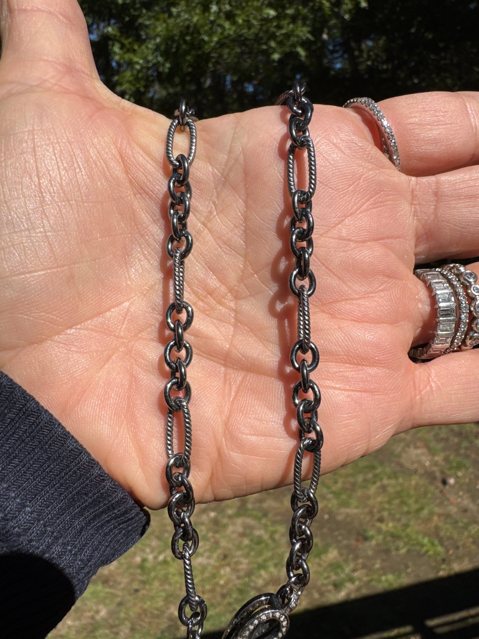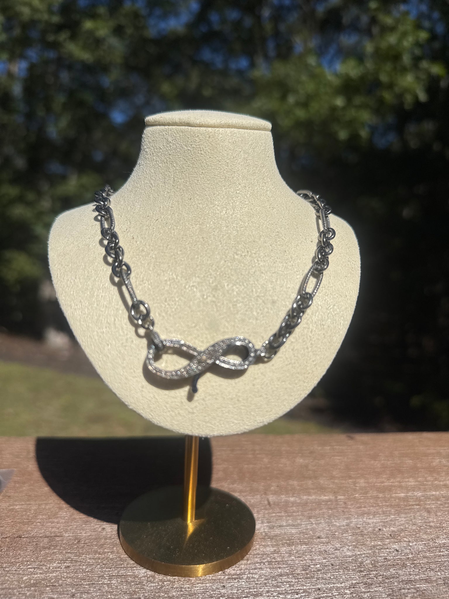 Textured Oval Smooth Round Link Chain Necklace with Infinity Diamond Clasp