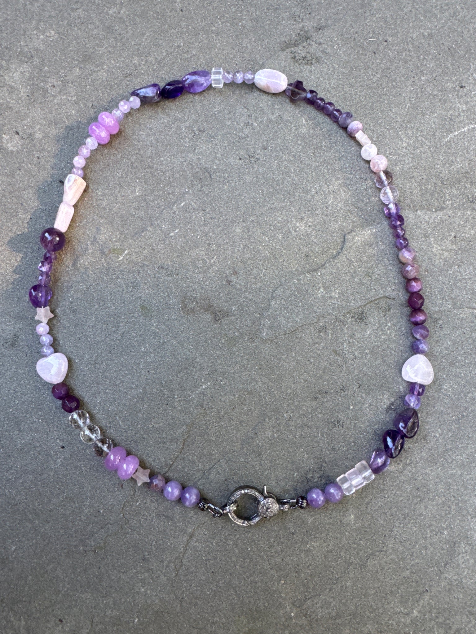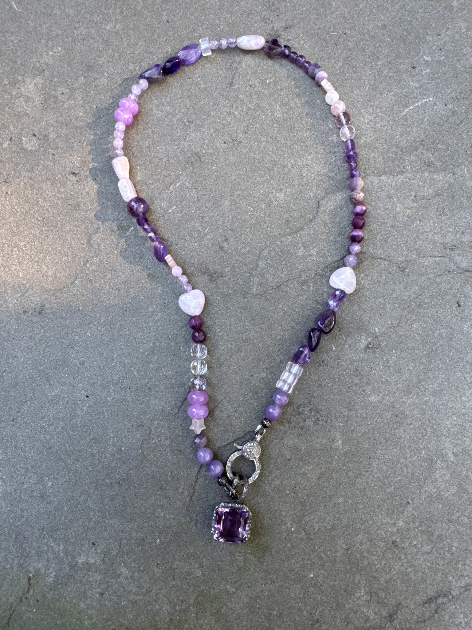 Necklace measures 18”. Clasp is set in sterling silver with diamonds on both sides. Wash one is one of a kind. Super fun. Pendant is sold separately.