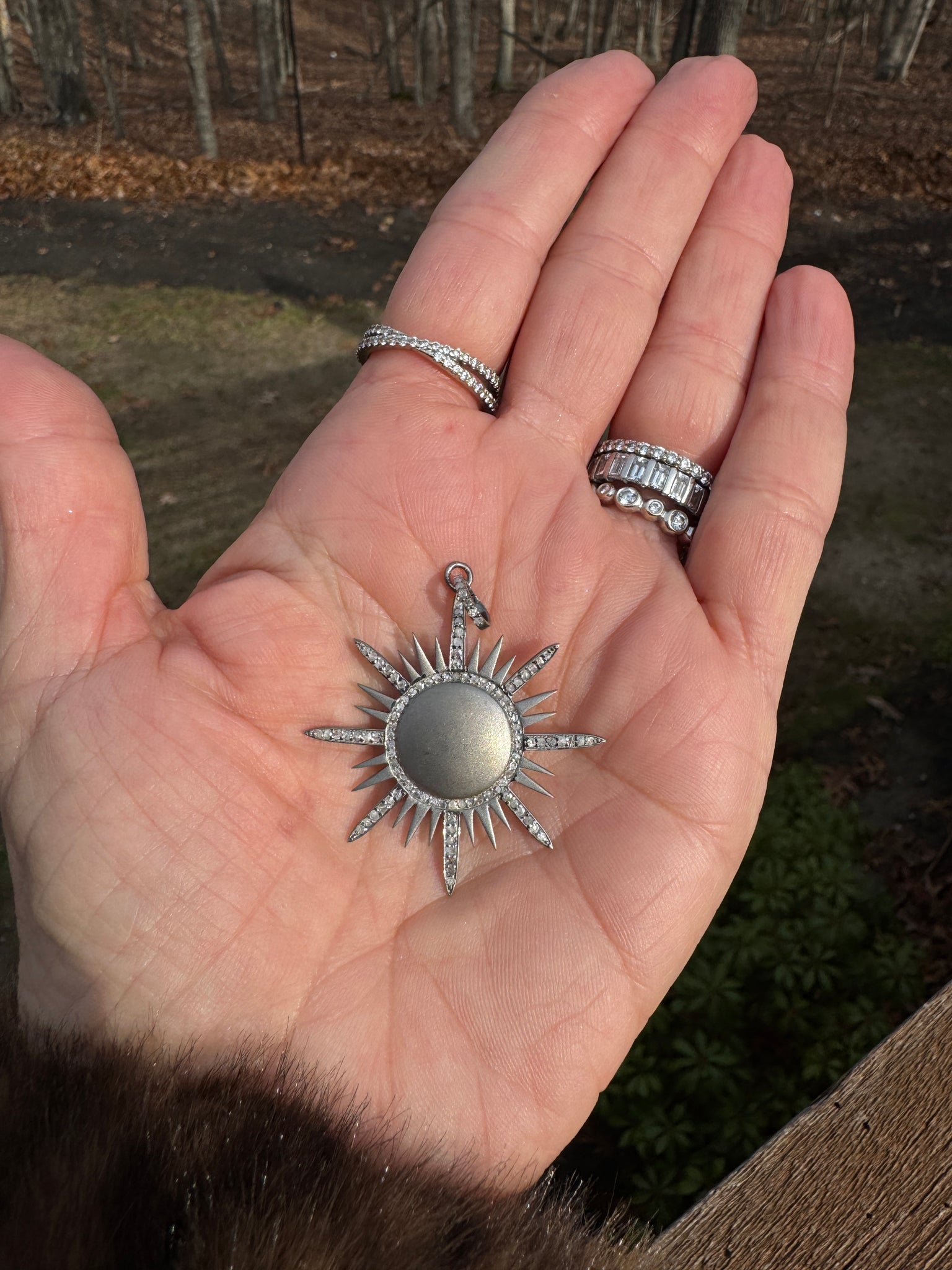 Gorgeous sterling silver pendant with diamond details. Perfectly paired with a two tone chain sold separately.